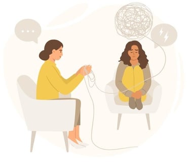 ajudando a elaborar estados de ansiedade, tristeza persistente e a sensação de vazio.